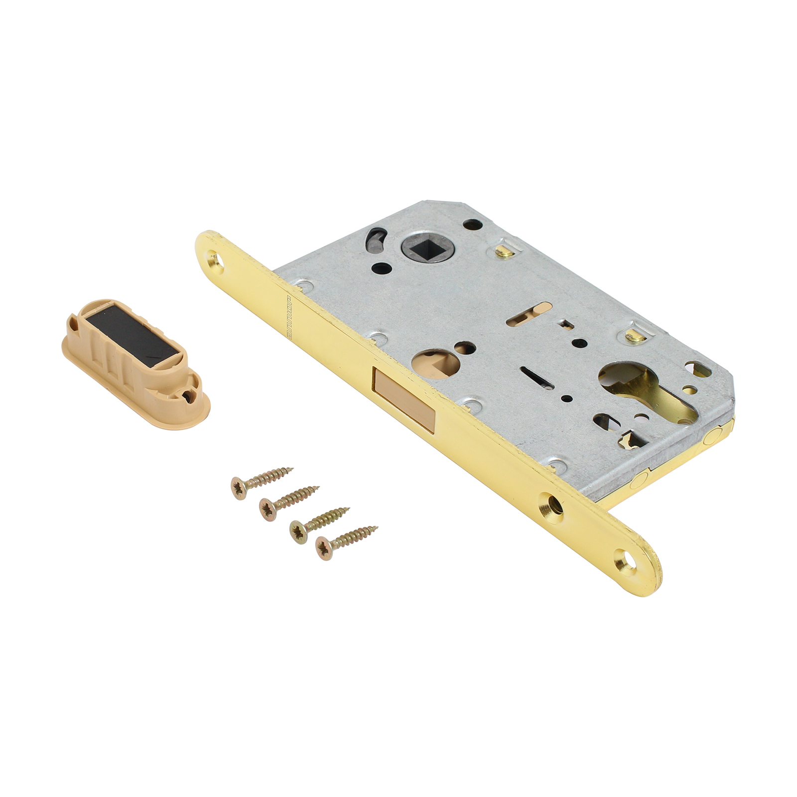 Универсальный магнитный врезной замок для установки на деревянные межкомнатные двери. Материал — сталь, гальваническое покрытие. Удаление ключевого отверстия — 50 мм. Межосевое расстояние — 85 мм. Овальная торцевая планка. Ширина планки — 18мм. Габариты корпуса — 200х90х20 мм. Засов из ударопрочного пластика. Цилиндровый механизм в комплект не входит.
