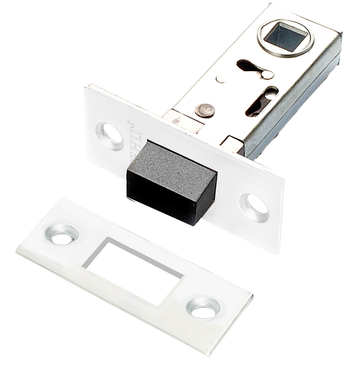 Магнитная защёлка врезная для установки на деревянные межкомнатные двери. Материал — сталь оцинкованная штампованная, гальваническое покрытие. Под ручку с квадратом 8 мм. Удаление ключевого отверстия — 50 мм. Габариты корпуса — 70х20х12 мм.