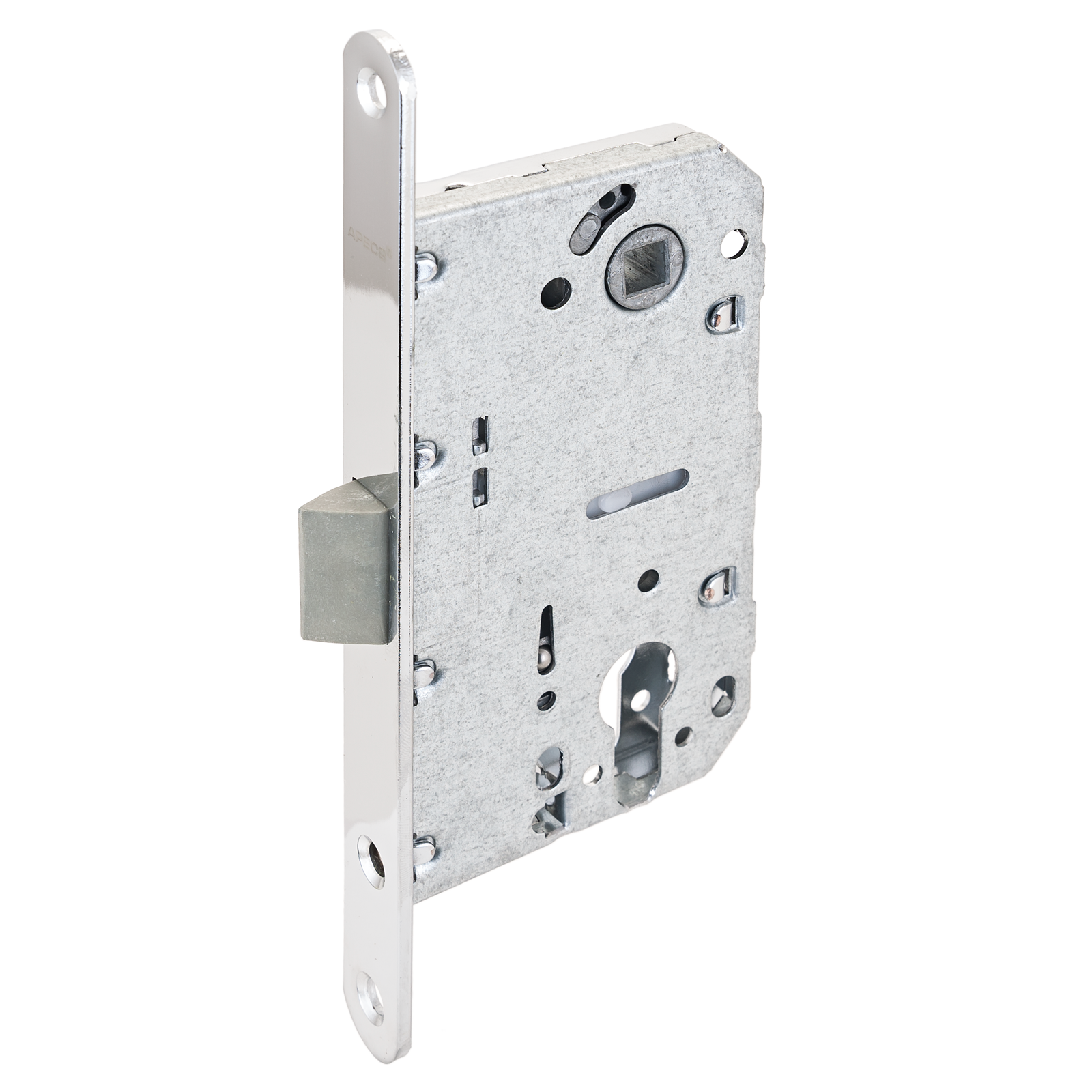 Малошумные замки и защелки, с пластиковым язычком, для межкомнатных дверей. Размеры корпуса идеальны для установки с дверными ручками на розетке в комплекте с накладкой на цилиндр. Пластиковый язычок снижает шум при закрывании двери. Перестановка язычка для левых/правых дверей занимает всего 3 секунды и не требует каких-либо инструментов. Угол нажатия ручки: 30 градусов. Стойкое покрытие подходит для использования во влажных помещениях (ванная комната). Межосевое расстояние 85мм . 500 000 циклов безотказной работы. Соответствие ГОСТу подтверждено сертификатом. Бюджетный выбор для тех, кому важна тишина.
