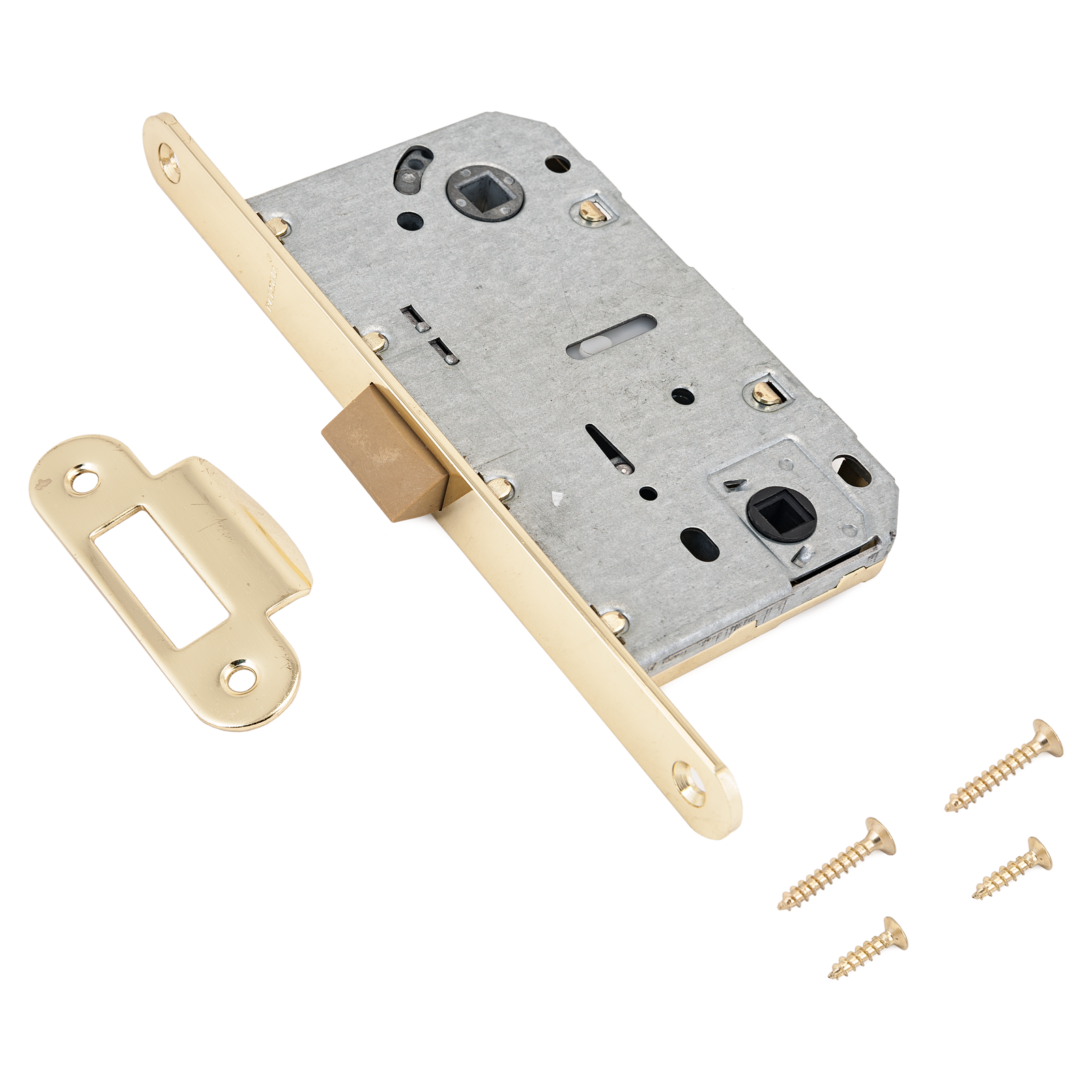 Защёлка врезная для установки на деревянные межкомнатные двери. Под ручку с квадратом 8 мм и сантехническую завертку с квадратом 6 мм. Ручкой управляется ригель защелки (25х12 мм), а заверткой осуществляется фиксация в закрытом положении. Материал — сталь оцинкованная, гальваническое покрытие. Удаление ключевого отверстия — 50 мм. Межосевое расстояние — 90 мм. Габариты корпуса — 131х73х14 мм.