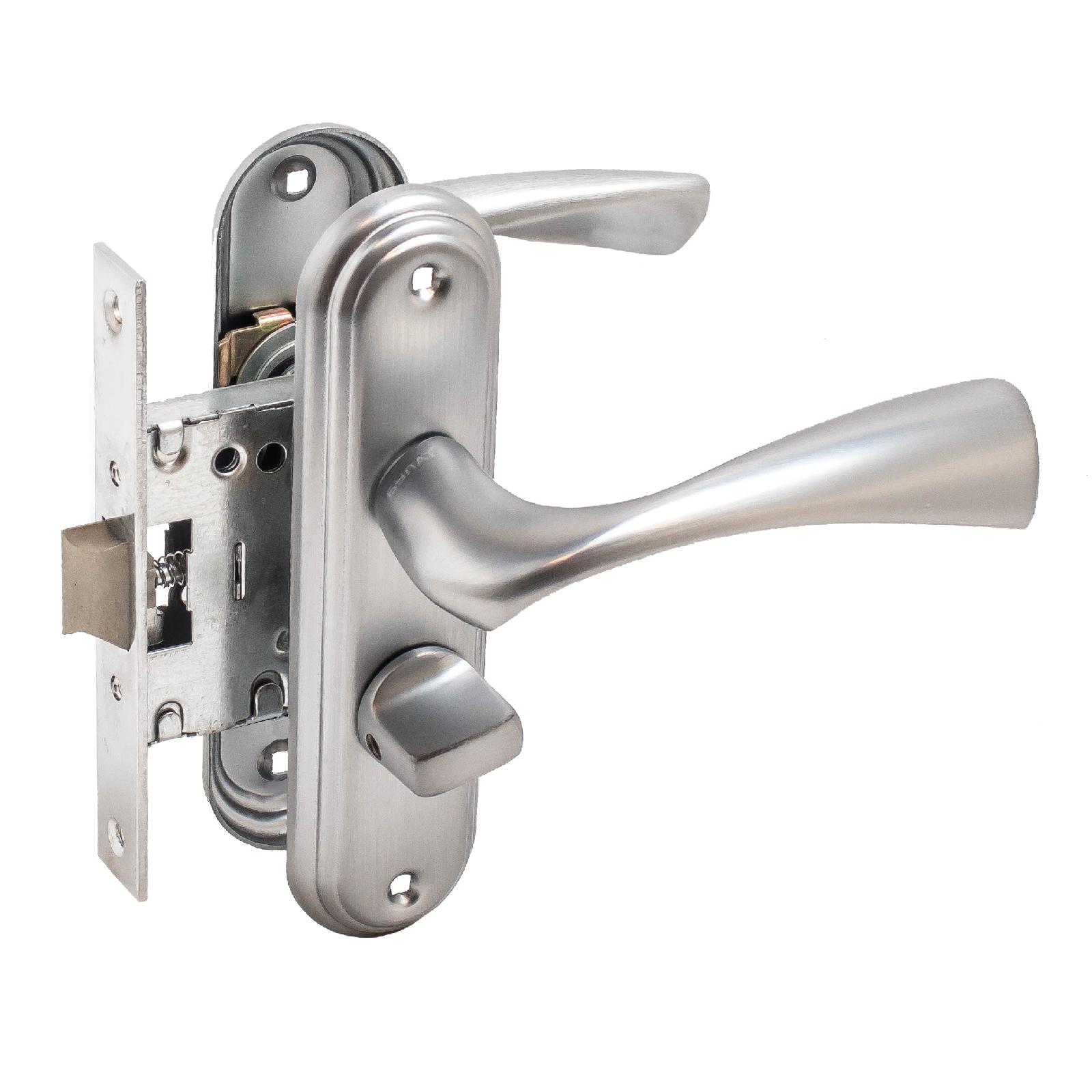 Врезная защелка с механизмом дополнительного запирания, предназначена для дверей сантехнических узлов и других помещений, где требуется фиксация двери изнутри.