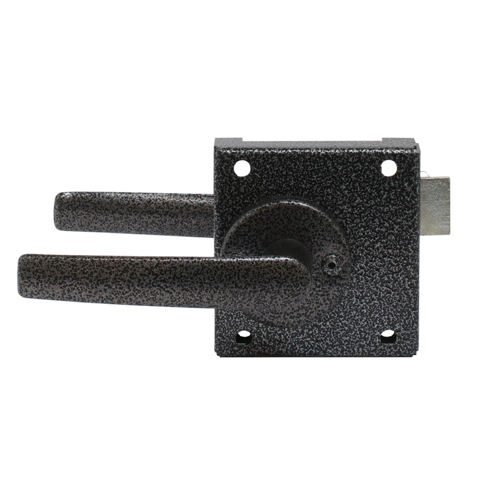 Защёлка накладная с фалевыми ручками для установки на деревянные межкомнатные двери. Материал корпуса — сталь оцинкованная, материал защелки — цинковый сплав, ручек — алюминиевый сплав, сталь.