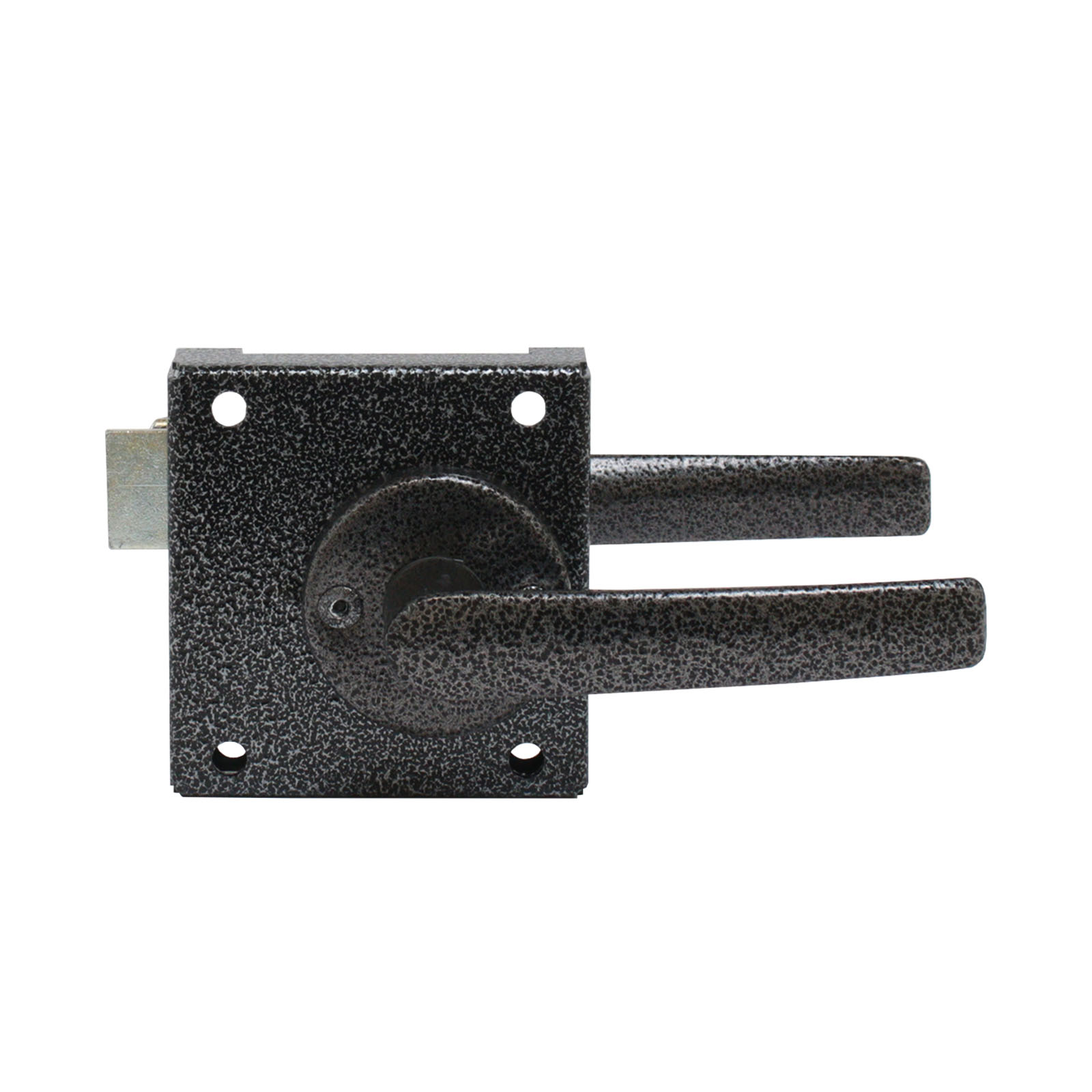 Защёлка накладная с фалевыми ручками для установки на деревянные межкомнатные двери. Материал корпуса — сталь оцинкованная, материал защелки — цинковый сплав, ручек — алюминиевый сплав, сталь.
