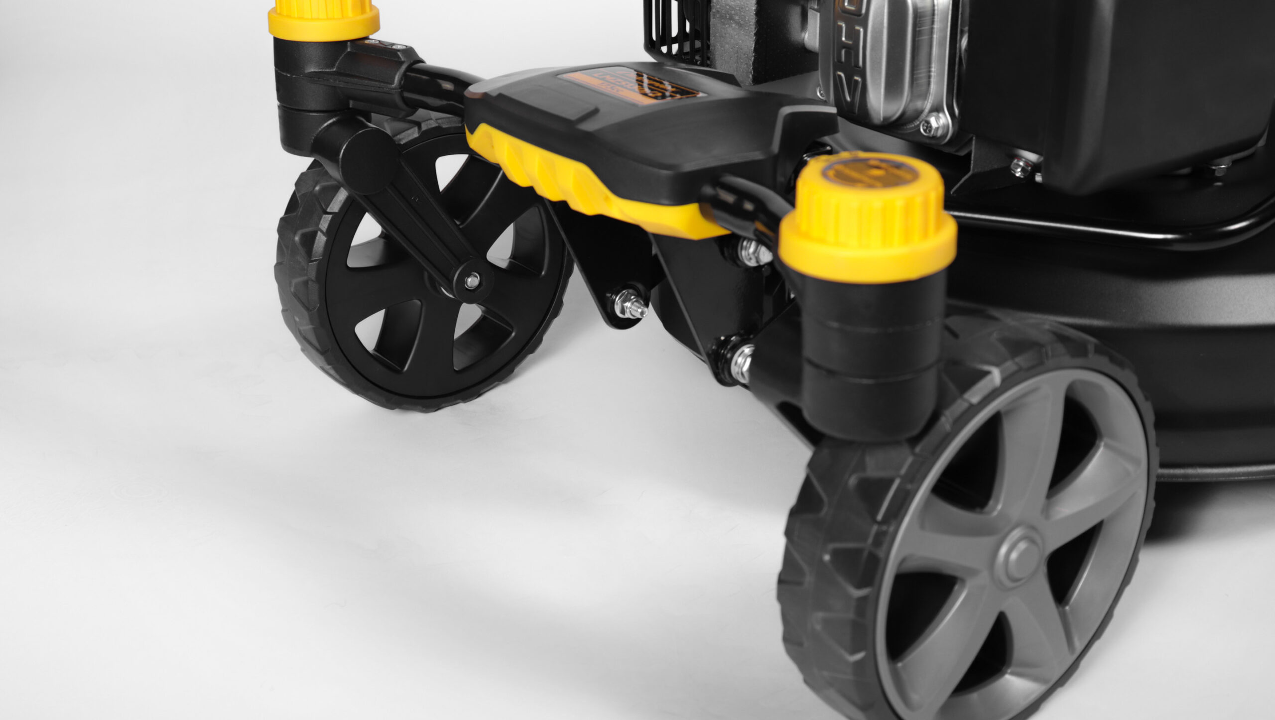 Регулировка высоты скашивани | 1 рычаг на все колеса; 6 положений |