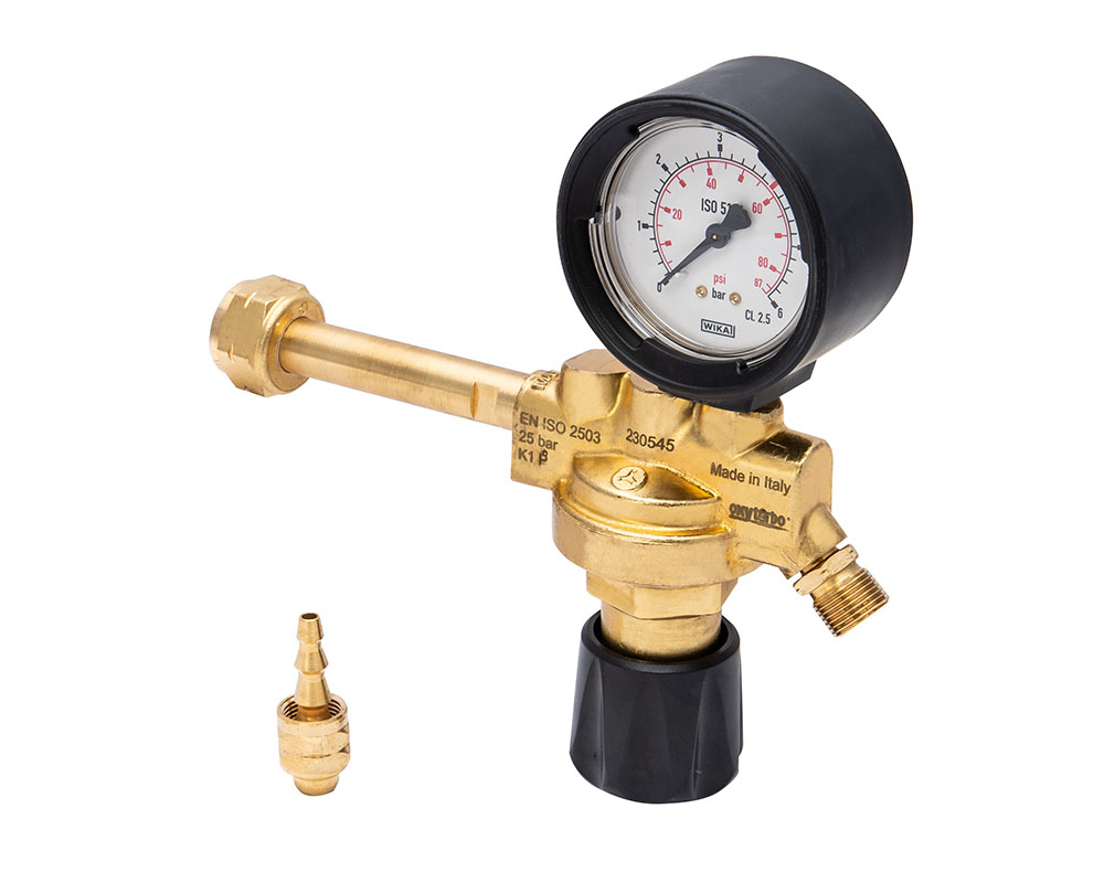 Одноступенчатый пропановый редуктор с одним манометром в защитном кожухе. Макс. выходное давление 4 бар. Номинальная пропускная способность 5 м3/ч.