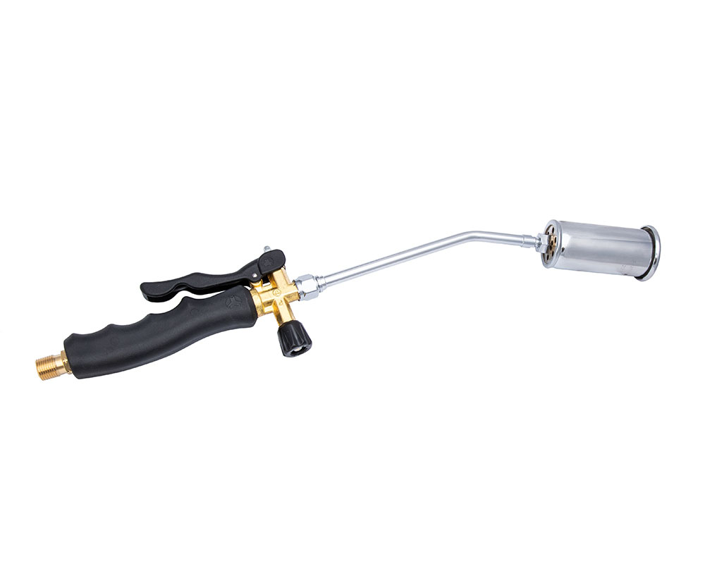 Пропановая рычажная горелка без пьезоподжига. Общая длинна горелки 500 мм. Диаметр сопла 45 мм.