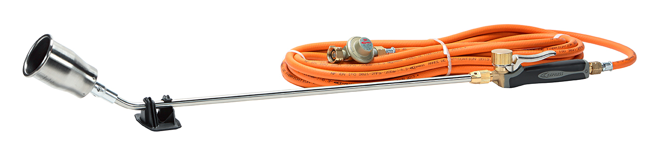 Комплект для сварки битумной кровли. Включает в себя рукоятку №620, нержавеющей наконечник диаметром 60мм, гриф 600мм, шланг 10м и редуктор HP на 4 бара.