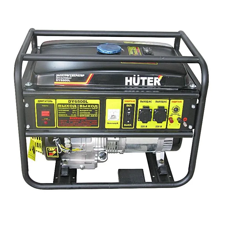 Электрогенератор Huter DY6500L — устройство для питания электрооборудования вдали от населенных пунктов, на стройплощадке или в случаях отключения электричества. Вырабатывает до 5 кВт электроэнергии. Оснащен мощным четырехтактным двигателем с верхним расположением клапанов. Агрегат оборудован датчиками уровня топлива и масла для своевременной дозаправки. Специальные резиновые стойки уменьшают вибрацию электрогенератора при работе.