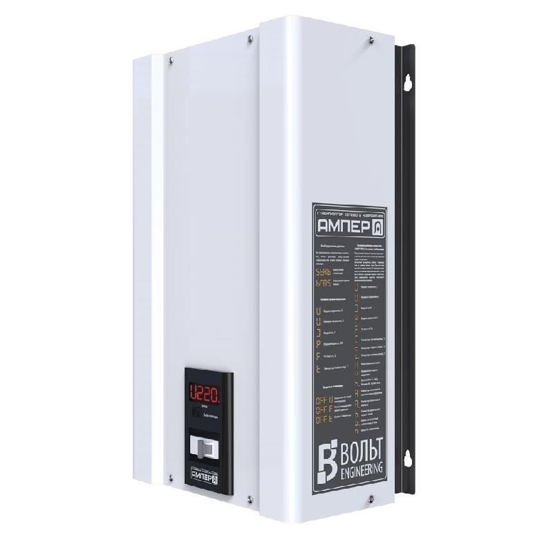 Стабилизатор напряжения Ампер Э 12-1/25 v2.0 ТМ «Вольт Engineering» идеально подходит для установки в квартире, частном доме, небольшом магазине или кафе.