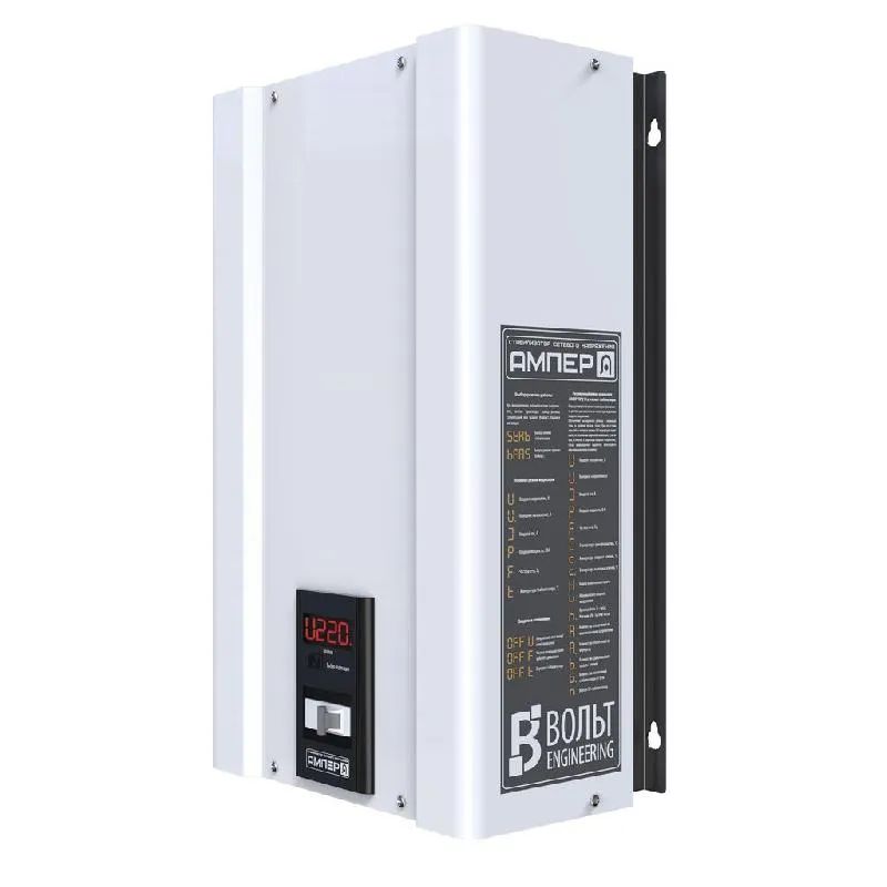 Стабилизатор напряжения ампер Э 9-1/25 V2.0 предназначен для поддержания стабильного напряжения 220В. Механизм защищает от скачков и просадок на линии электропитания. Используется в условиях офиса, квартиры или частного дома и служит для защиты холодильников, стиральных машин, телевизоров, компьютеров, котлов и другой бытовой техники различного назначения.