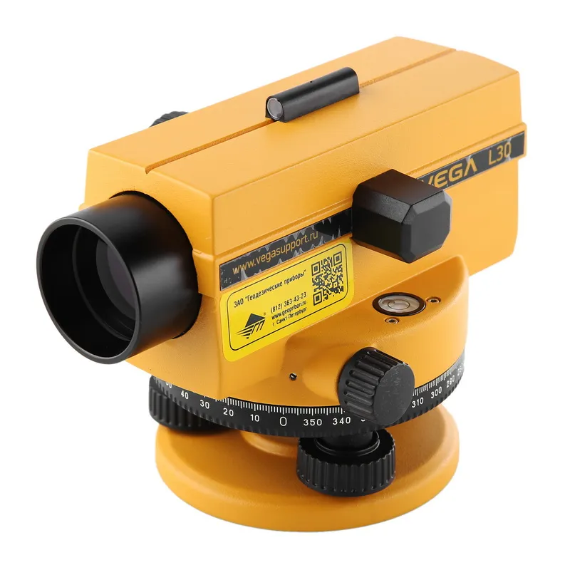 Нивелир Vega L30 обеспечивает среднеквадратическую погрешность измерения превышений 1,5 мм на 1 км двойного хода. 30-кратное увеличение зрительной трубы с качественной просветленной оптикой позволяет проводить измерения на значительных расстояниях. Минимальная дистанция визирования составляет всего 50 см, что удобно для работы в стесненных условиях.