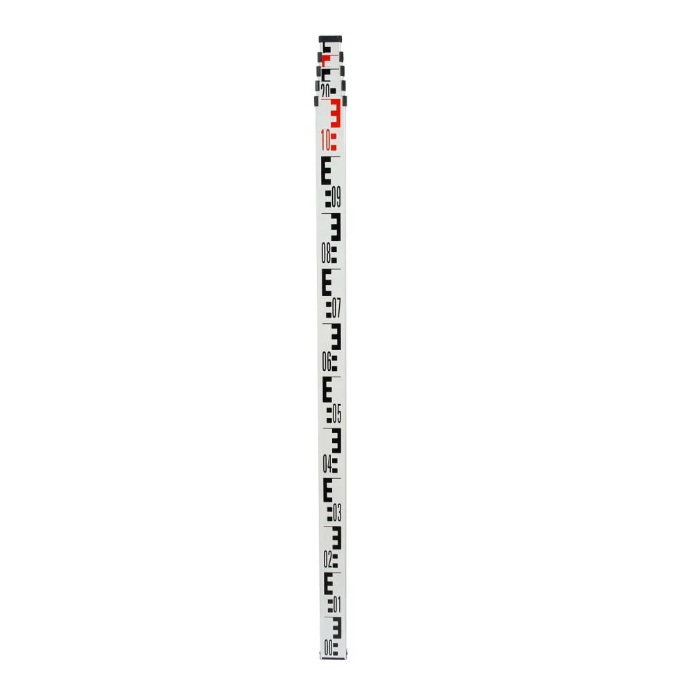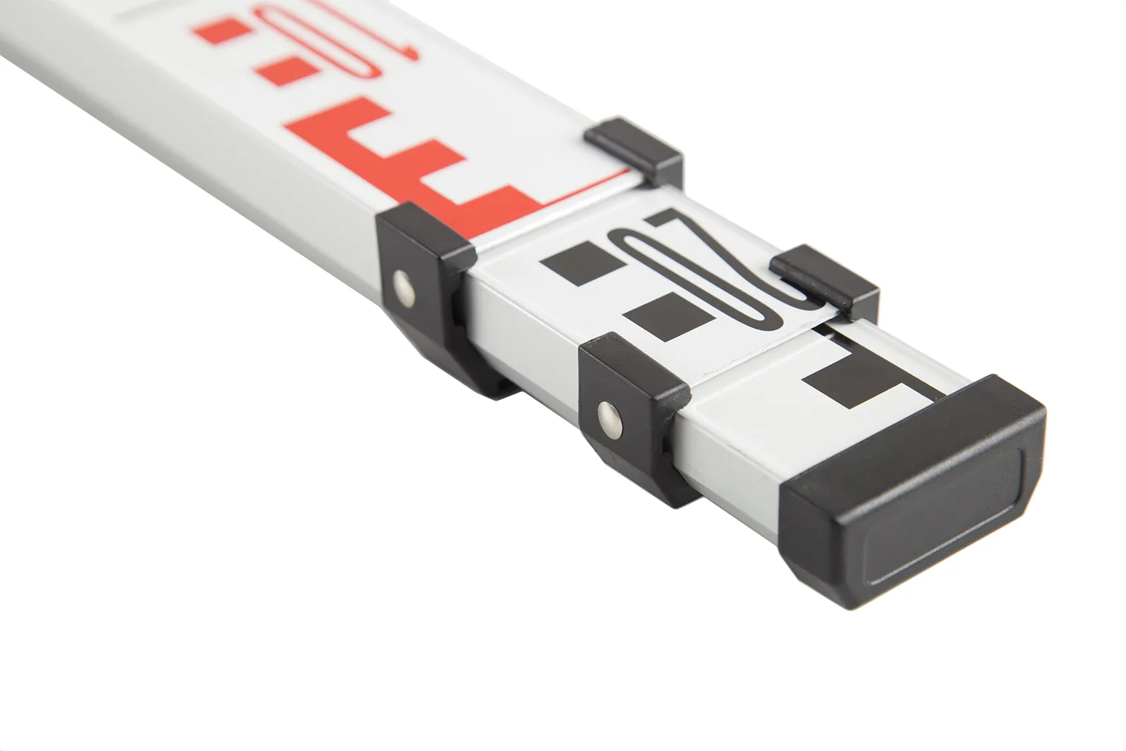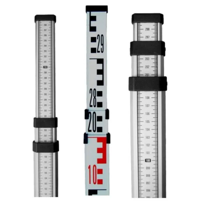 Рейка телескопическая алюминиевая VEGA TS5M применяется с оптическим нивелиром. Используется во время проведения работ по определению высот точек. Имеет 5 секций, они выполнены из цельнолитого алюминиевого профиля. На лицевой стороне расположена шкала «Е» красного и черного цветов. А на задней стороне – миллиметровая шкала.