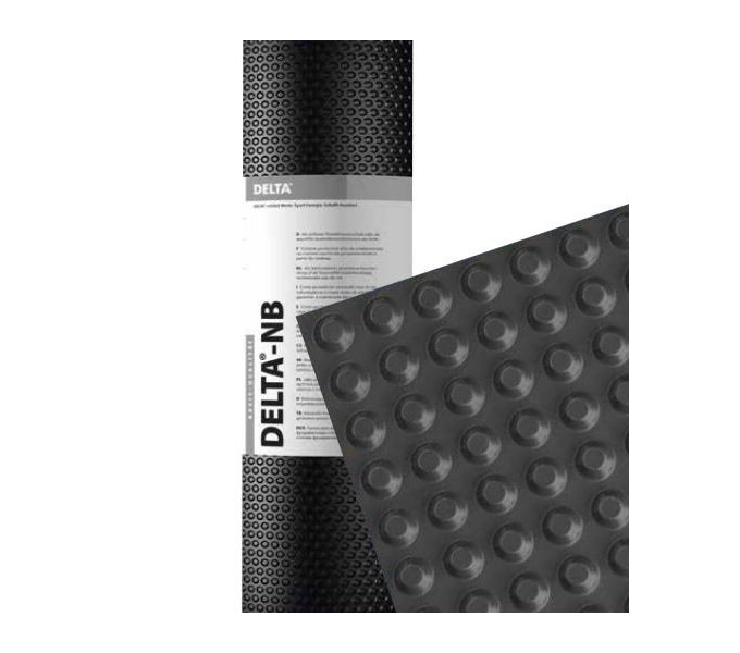 - Мембрана DELTA NB (Дельта НБ) — профилированная мембрана, основой которой выступает вторичное сырье, в которое добавлены пластификаторы и стабилизаторы, обеспечивающие эластичность материала. Использование данной мембраны заменяет бетонную подготовку при заливке фундаментных плит, а также защищает тепло- и гидроизоляционный слой от повреждений в момент проведения обратной засыпки. В результате несущая способность фундамента увеличивается, также, как и надежность гидроизоляции.