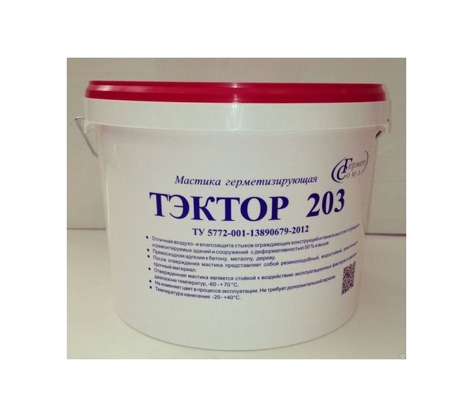 Двухкомпонентная полиуретановая мастика Тэктор 203 «Капитальный» — с основой из полиуретанового каучука используется для герметизации стыков панельных плит и ограждающих конструкций. Влаго- и ветрозащитная мастика применяется как при ремонте, так и при строительстве зданий.