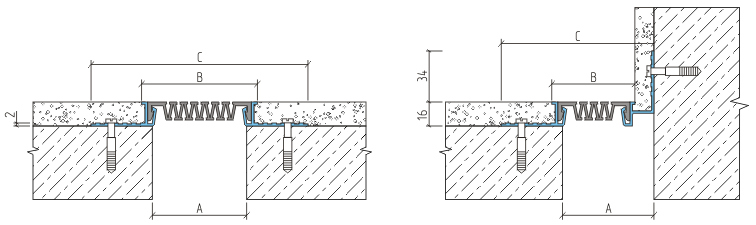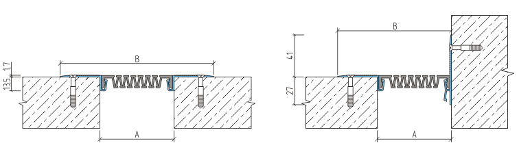 Накладные профильные конструкции АКВАСТОП® тип ДШС-0 предназначены для обустройства деформационных швов, непосредственно по финишной отделке стен и потолков. Компенсатор из термоэластопласта и защитное анодирование алюминиевого профиля позволяет обустраивать деформационные швы на фасадах зданий.