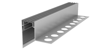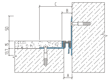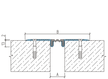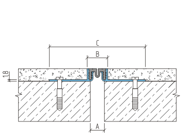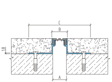 Обустройство деформационных швов с высотой конструкции пола от 15 мм. Монтируется в пространство плиточного клея. Уменьшенная ширина крепежного узла компенсатора позволило минимизировать видимую часть профильной конструкции. По мере износа компенсатор может быть легко заменен. |