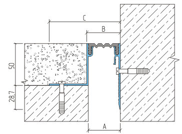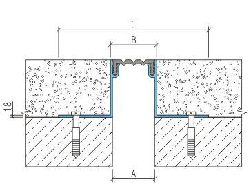 Закладные профильные конструкции АКВАСТОП® тип ДШЛ-50 — обустройство деформационных швов с высотой конструкции пола от 50 мм. Эксплуатация во внутренних помещениях: пешеходные переходы, торговые и офисные центры с предполагаемой нагрузкой на профильную конструкцию до 0,05 МПа. Компенсатор изготовлен из термоэластопласта (ТЭП) и устойчив к воздействию маслам, бензину и моющим средствам. |
