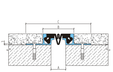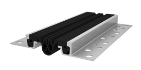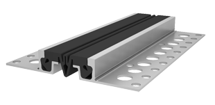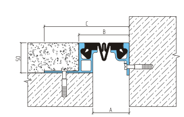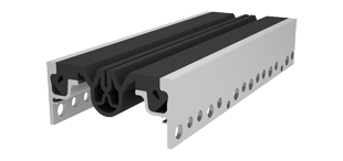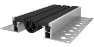 Обустройство деформационных швов с высотой конструкции пола от 50 мм. Эксплуатация во внутренних помещениях и открытых площадках: мостовые конструкции, складские помещения, многоярусные стоянки, грузовые и пассажирские платформ, пешеходные переходы и другие сооружения с предполагаемой нагрузкой на профильную конструкцию до 3,0 МПа. Компенсатор изготовлен из EPDM резины, а по мере износа может быть легко заменен.