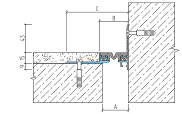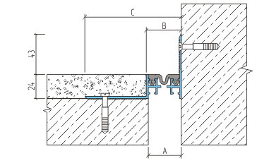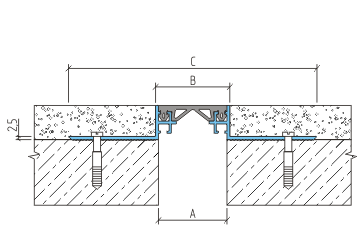 Закладной вариант использования универсальной профильной конструкции типа ДШО. Высота конструкции пола от 24 мм. Алюминиевые направляющие поставляются с перфорацией. Возможны комбинации со всеми компенсаторами серии ДШВ.