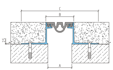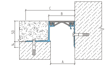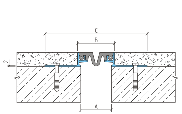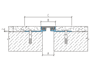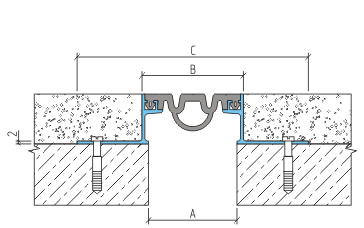 Закладные профильные конструкции АКВАСТОП® тип ДШВ-50 — обустройство деформационных швов с высотой конструкции пола от 50 мм. Эксплуатация во внутренних помещениях: пешеходные переходы, торговые и офисные центры с предполагаемой нагрузкой на профильную конструкцию до 0,15 МПа.