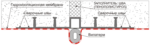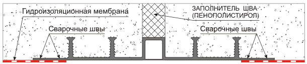 ОБЛАСТЬ ПРИМЕНЕНИЯ | Герметизация деформационных швов при совместном использовании с гидроизоляционными мембранами при строительстве заглубленных и подземных сооружений. |