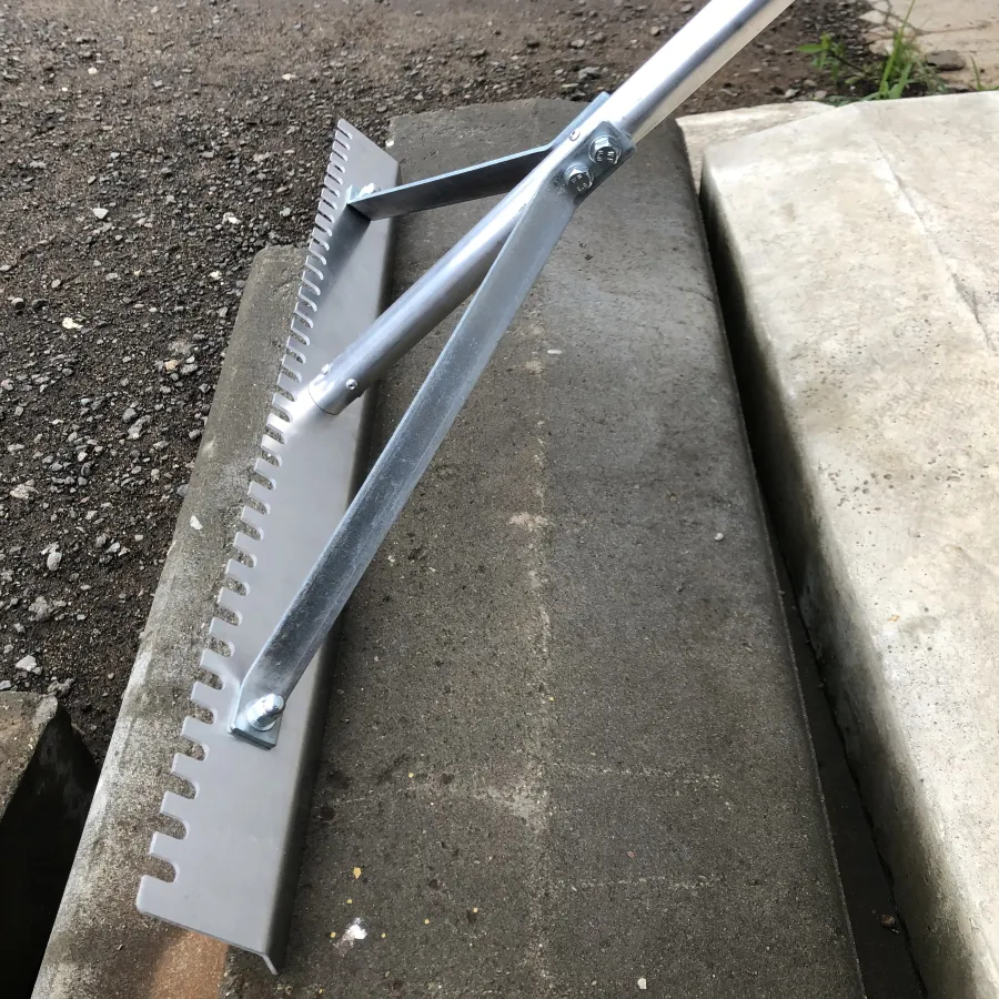 Грабли-гладилка КН-720 представляют собой ручной инструмент, предназначенный для разравнивания и профилирования асфальта, щебня, гравия, песка, отсева, грунта или бетона. Могут применяться для строительных, дорожных и ландшафтных работ, а также для благоустройства территорий.