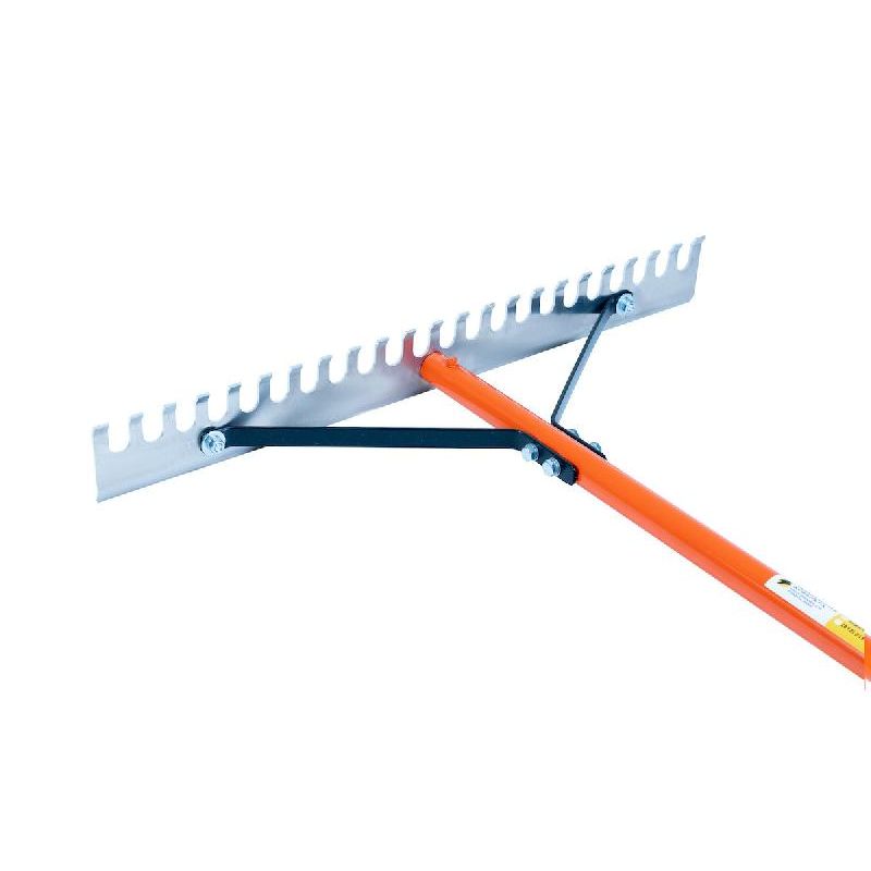 Достаточная длина рукоятки в 2000 мм и относительно небольшая масса в 2 кг обеспечивают удобство и легкость рабочего процесса. Одна сторона полотна гладкая, на второй расположены зубцы размером 35х20 мм, что позволяет выполнять несколько видов работ одним приспособлением.