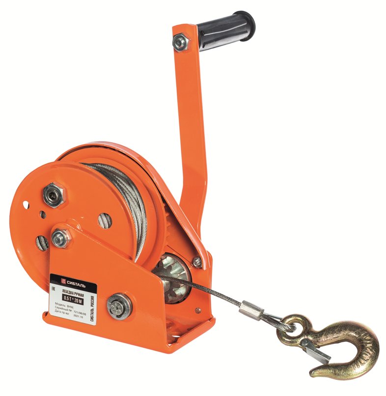 Лебедка барабанная ручная BHW 0,5 т 10 м СибТаль — это ручная барабанная лебёдка, предназначенная для подъёма и перемещения грузов в вертикальной или горизонтальной плоскости. Работает за счёт вращения ручки и намотки каната или ленты на барабан.
