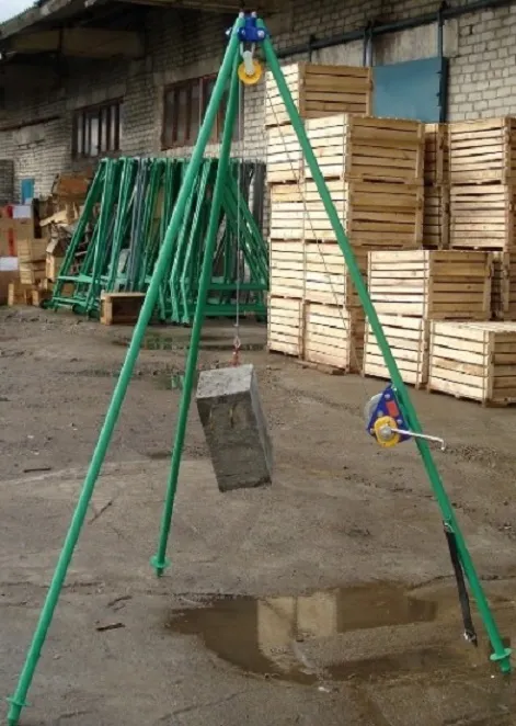 Эксплуатировать треногу можно как в закрытом помещении, так и на открытом пространстве, но при температуре не ниже -40°С. Ее нельзя применять для перемещения ядовитых грузов, взрыво- или пожароопасных предметов. Помещение, в котором будет расположено устройство, не должно быть насыщено парами щелочей и кислот.