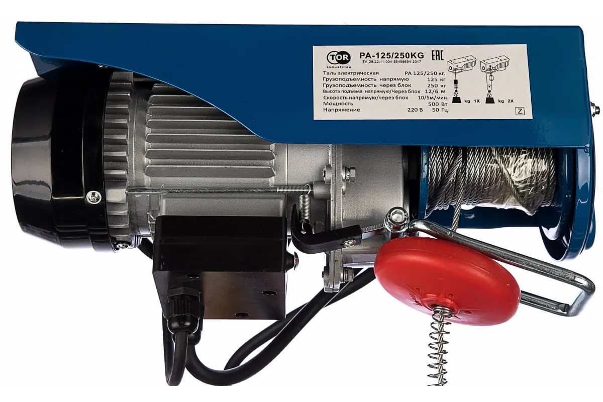 Стационарная электрическая таль РА-125/250 — это механизм, предназначенный для подъема, удержания и опускания груза. При помощи оборудования можно перемещать грузы весом до 250 кг, на высоте от 6 до 12 метров. Используется в складских помещениях, на производстве, в промышленности. При помощи тали транспортируют рабочие узлы, запчасти, строительные материалы. Рассчитана на подключение к бытовой электросети 220В и оборудовано двигателем мощностью 510 Вт.