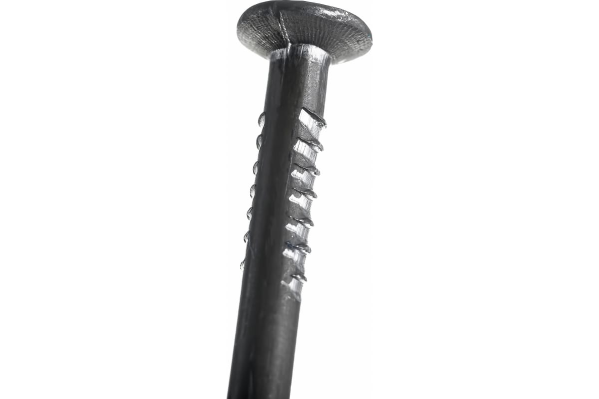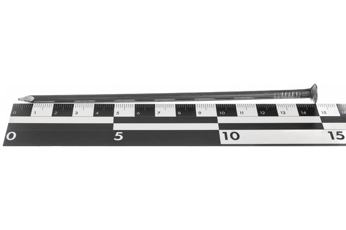 Строительные гвозди имеют гладкое основание и аккуратную шляпку, которая может быть прямой или конусовидной. Острие ромбовидной формы, напоминающее 4-гранную пирамиду. Диаметр стержня меньше головки. Поверхность тела возле шляпки имеет неглубокие засечки.