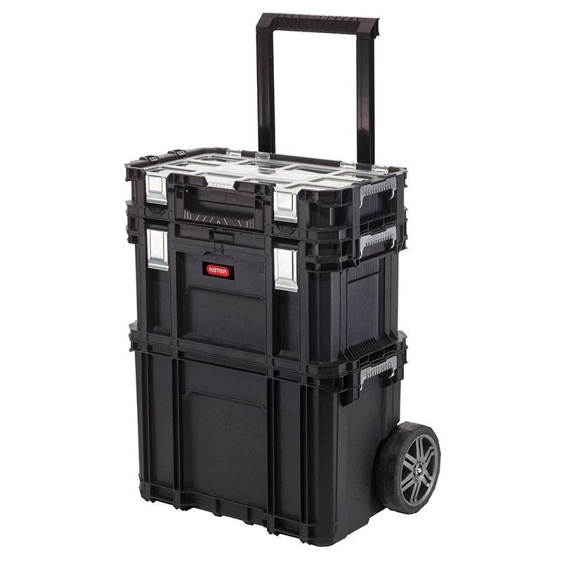 - Комплект из 3 предметов KETER Connect System — тележки, большого ящика с органайзером и двухуровневого органайзера