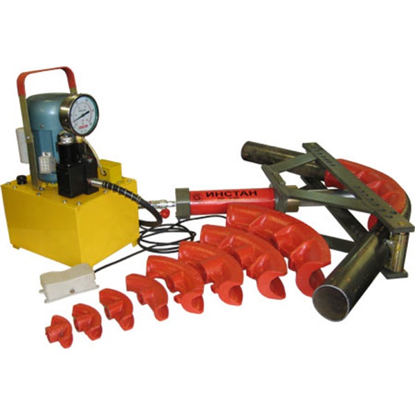 Трубогиб гидравлический переносной с электроприводом предназначен для гибки водо-газопроводных труб по ГОСТ 3262-75, а также проката круглого сечения, прочностные характеристики которого не превышают характеристик трубы 3″ (условный проход 80мм).