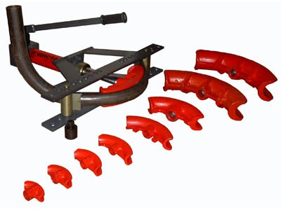 5. Гибочные шаблоны 5 выполнены методом стального точного литья. Шаблоны от 3/8″ до 1,25″ являются унифицированными для всех типоразмеров трубогибов. При комплектации ими трубогибов для гибки труб свыше 1,25″ к ним прилагается переходная втулка (п.3.6). В ручье гибочных шаблонов от 1,5″ до 3″ выполнено обнижение, что снижает возможность сплющивания и гофрообразования труб.