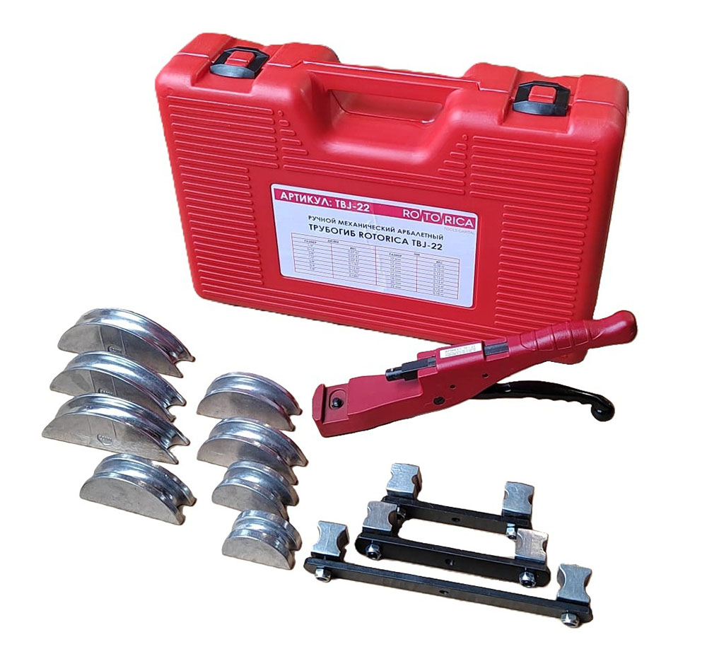 Ручной храповый трубогиб с алюминиевыми метрическими сегментами 10 — 12 — 14 — 15 — 16 — 18 — 20 — 22 мм. Пластиковый кейс. Вес комплекта 5 кг.