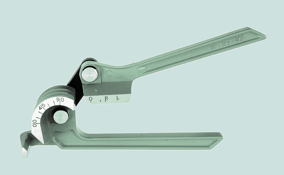 Тройной рычажный трубогиб. Изгибает трубу с внешним диаметром 1/4″, 5/16″ и 3/8″на угол до 90°.