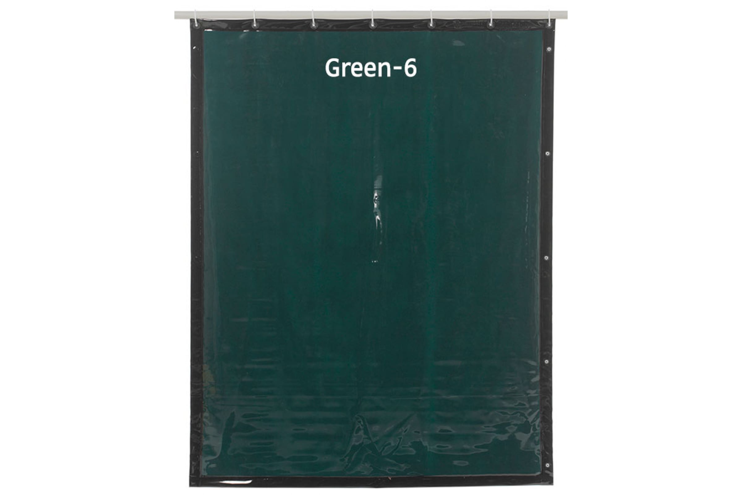 Защитная шторка зеленого цвета от ультрафиолетового излучения во время сварки. Высотой 200см и шириной 140см. С верхней стороны 7 колец для подвеса. По бокам защелки. По всему периметру 5см шов. Толщина ПВХ материала 0,4мм. Стойкость к температуре: 5°C — 80°С.