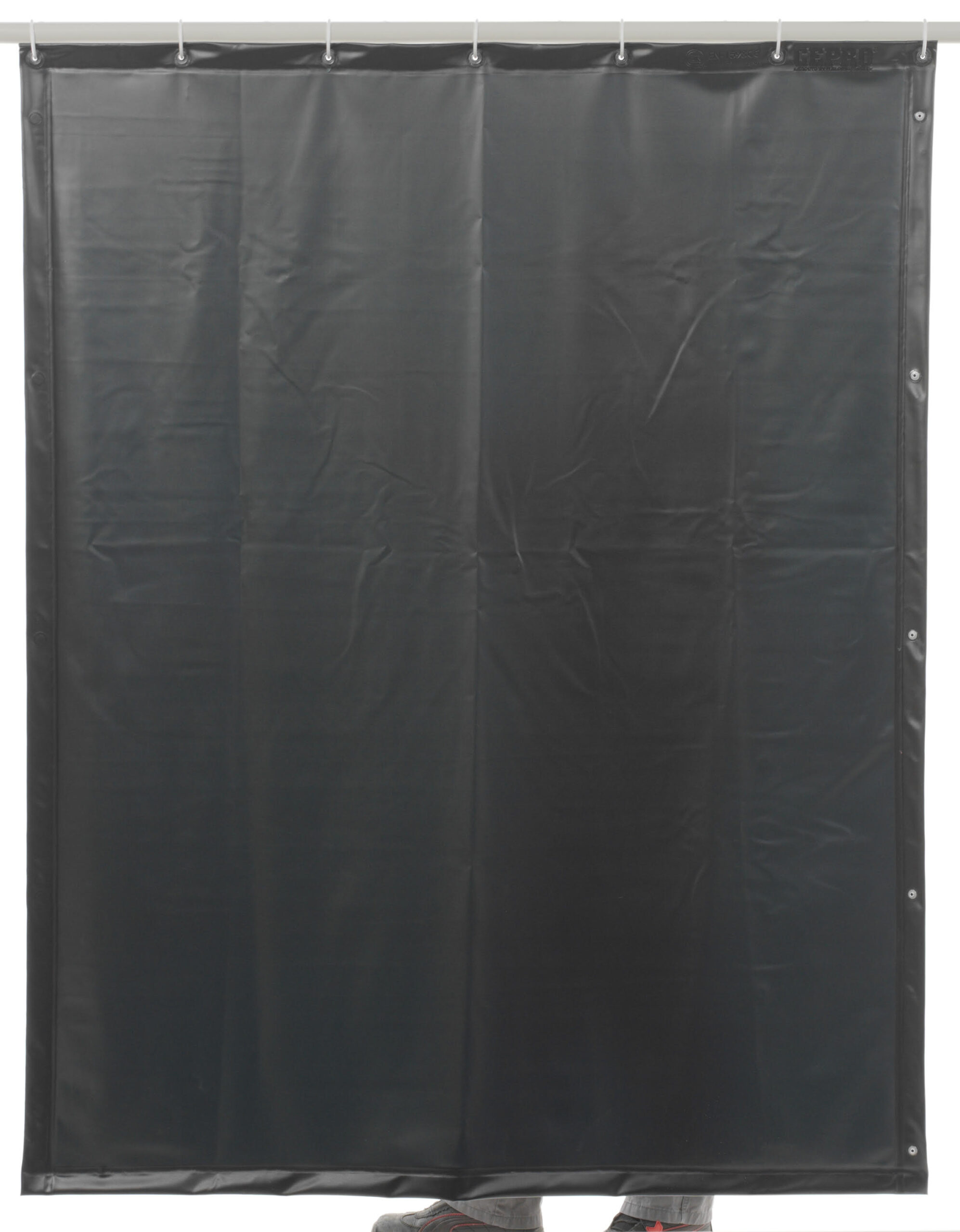 Шторка темно-зеленого цвета для защиты от ультрафиолетового излучения во время сварки. Высотой 220см и шириной 140см. С верхней стороны 7 колец для подвеса. По бокам защелки. По всему периметру 5см шов. Толщина ПВХ материала 0,4мм. Стойкость к температуре: 5°C — 80°С.