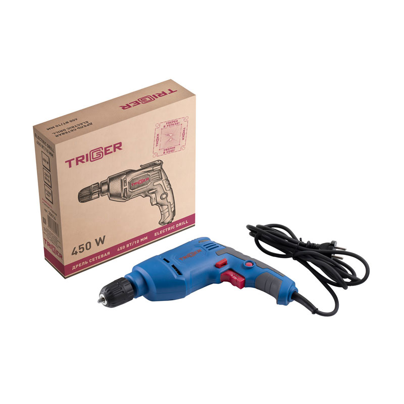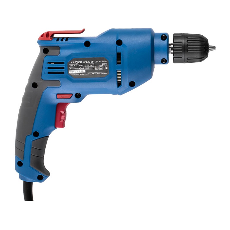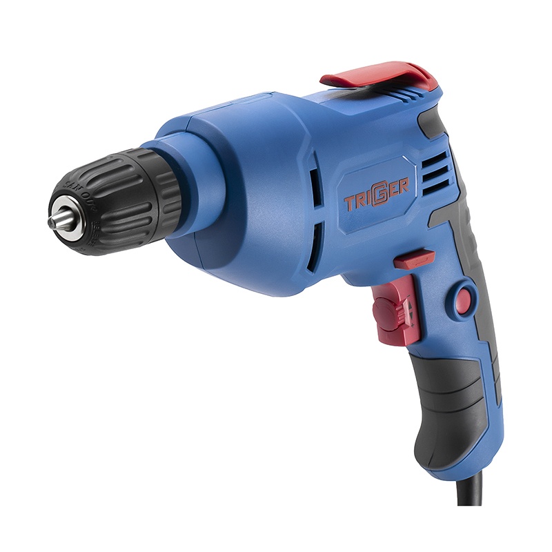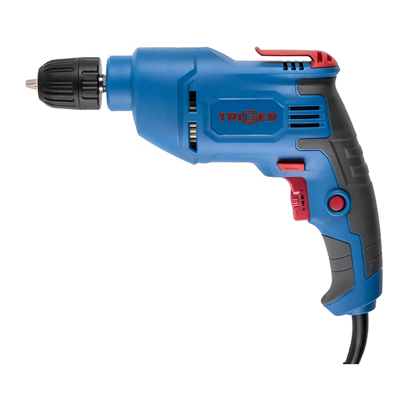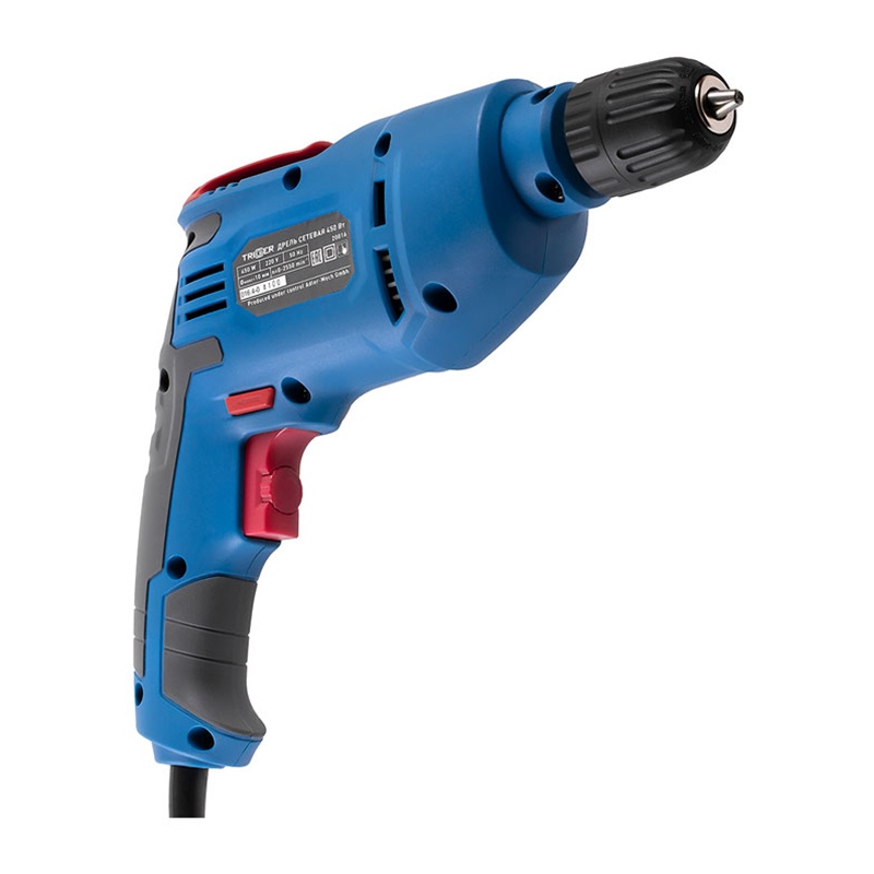 Предназначена для сверления отверстий в металле, дереве, пластике. Электронная регулировка скорости вращения. Функция реверса позволяет извлечь сверло при заклинивании, а также использовать дрель как шуруповерт. Фиксация кнопки «пуск». Бытрозажимной патрон. Резиновый морозостойкий шнур 3 м. Клипса для крепления на поясе.
