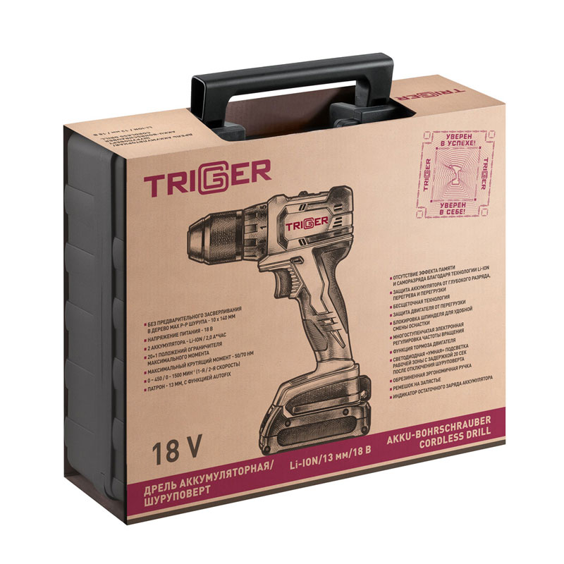 Предназначена для сверления отверстий, закручивания саморезов и шурупов. Мощный, хорошо сбалансированный шуруповерт. Тормоз двигателя для сложных работ по закручиванию. 13 мм двухкомпонентный патрон позволяет использовать оснастку больших размеров. Два режима работы: сверление и закручивание. Блокировка шпинделя для удобной смены оснастки. Светодиодная подсветка рабочей зоны. Реверс. Металлические шестерни редуктора. Обрезиненная эргономичная ручка. Клипса для крепления на поясе. Ремешок на запястье от случайного падения инструмента при работе.