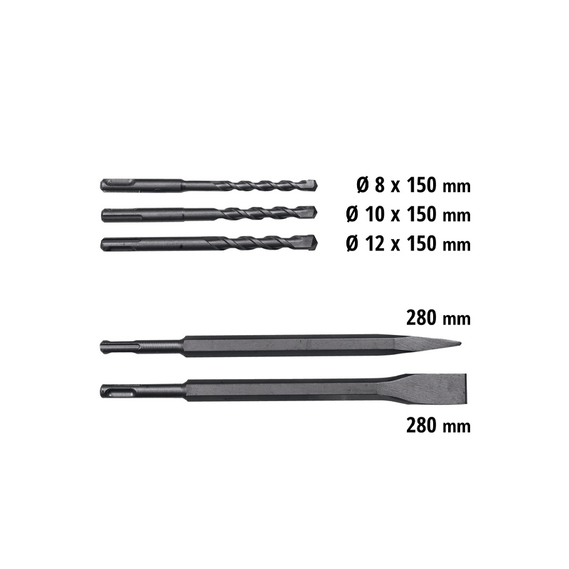 Перфоратор Einhell TE-RH 32 4F Kit (4257944) – это отличный помощник мощностью 1250 Вт с четырьмя режимами работы: сверление, ударное сверление и долбление с долотом и без него. Пневматический ударный механизм выдает хороший удар, прочная алюминиевая зубчатая головка увеличивает долговечность перфоратора. Виброизолированная основная рукоятка с мягкими вставками и дополнительная рукоятка с ребрами способствуют надежному захвату и удержанию инструмента. Перфоратор оснащен прочным универсальным держателем инструмента SDS-plus с полуавтоматической функцией, светодиодными индикаторами интенсивности нажатия и состояния щеток, функцией автоматического отключения, металлическим ограничителем глубины сверления и регулятором частоты вращения.