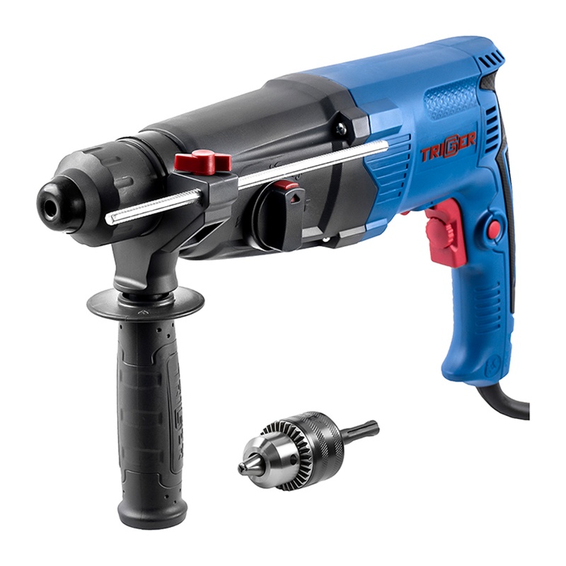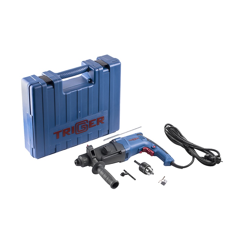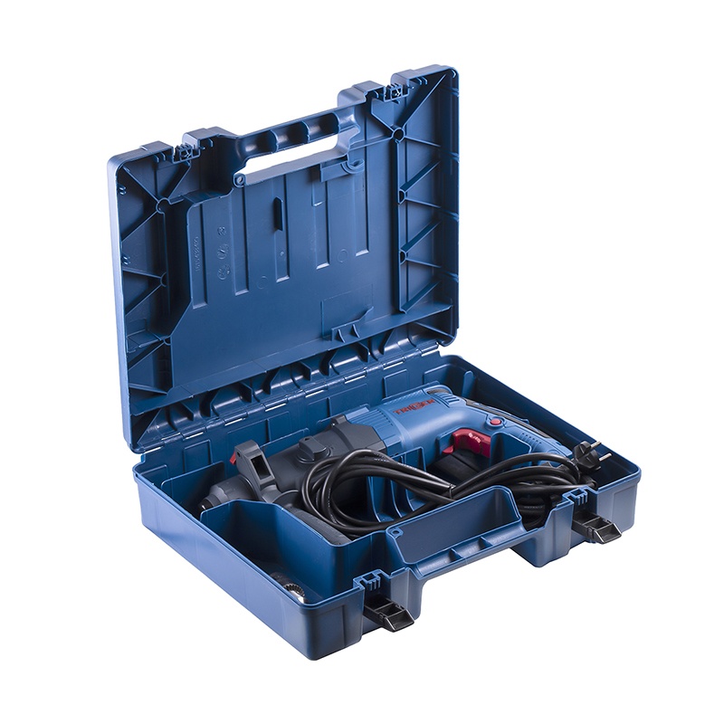 Предназначен для бурения отверстий и отбойных работ. Компактные размеры. Три режима работы: сверление, сверление с ударом, долбление. Функция установки угла зубила. Электронная регулировка скорости вращения. Фиксация кнопки «пуск». Предохранительная муфта для защиты от заклинивания бура. Функция щеточного реверса используется для извлечения застрявшего бура. Отсутствие удара на холостом ходу. Пылезащита двигателя. Шнур питания в резиновой изоляции длиной 4 метра.