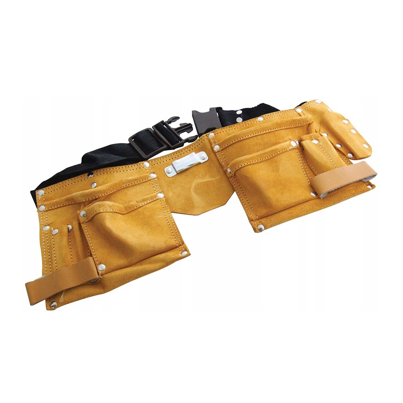 Предназначена для фиксации и удержания небольшого ручного инструмента, расходных материалов и крепежных элементов. В комплект пояса входят две поясные сумки из натуральной кожи с карманами разных размеров, а также металлический держатель для подвешивания молотка. Длина ремня может быть отрегулирована для более комфортного использования.
