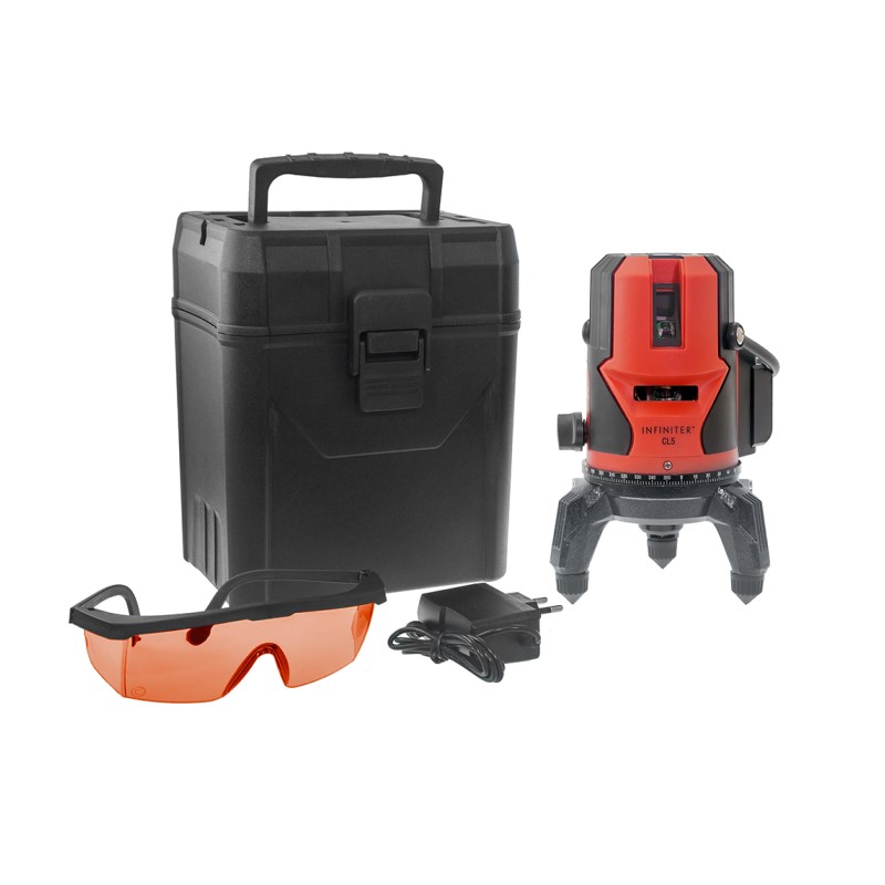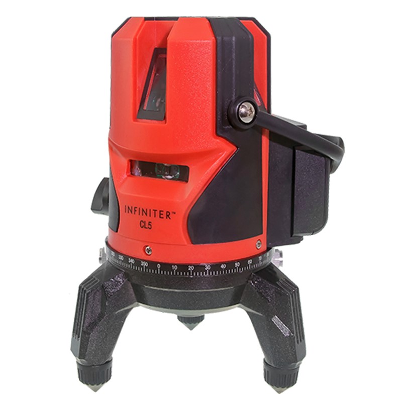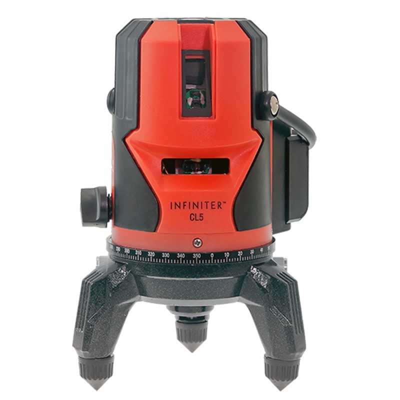Предназначен для построения и контроля вертикальных и горизонтальных плоскостей и линий. Infinite CL5 строит 4 вертикальные плоскости и одну горизонтальную плоскость, точки отвеса (зенит и надир), и обеспечивают компенсацию наклона корпуса до 3 градусов. Основание прибора с выравнивающими винтами, резьба для установки на штатив 5/8″ обеспечивает удобство работы. Импульсный режим позволяет использовать детектор для увеличения дальности работы, а также для работы с детектором в условиях, когда лазерный луч плохо виден. Прибор пригоден как для эксплуатации в закрытых помещениях, так и на открытых строительных площадках.