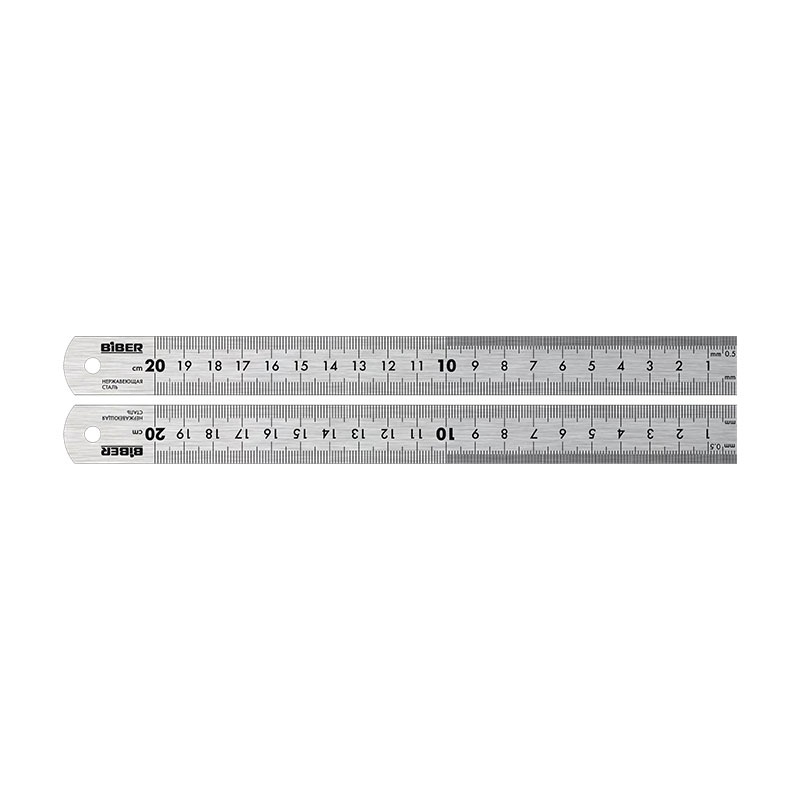 Линейка Biber 40161 200 мм нержавеющая сталь, двухсторонняя шкала