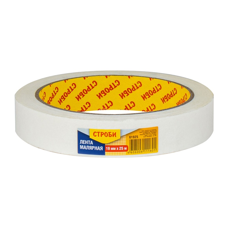 Лента малярная Строби используется для защиты поверхностей, элементов декора, мебели при проведении малярных и штукатурных работ. Малярная клейка лента 25 м представляет из себя крепированную бумагу со слоем клея на каучуковой основе.