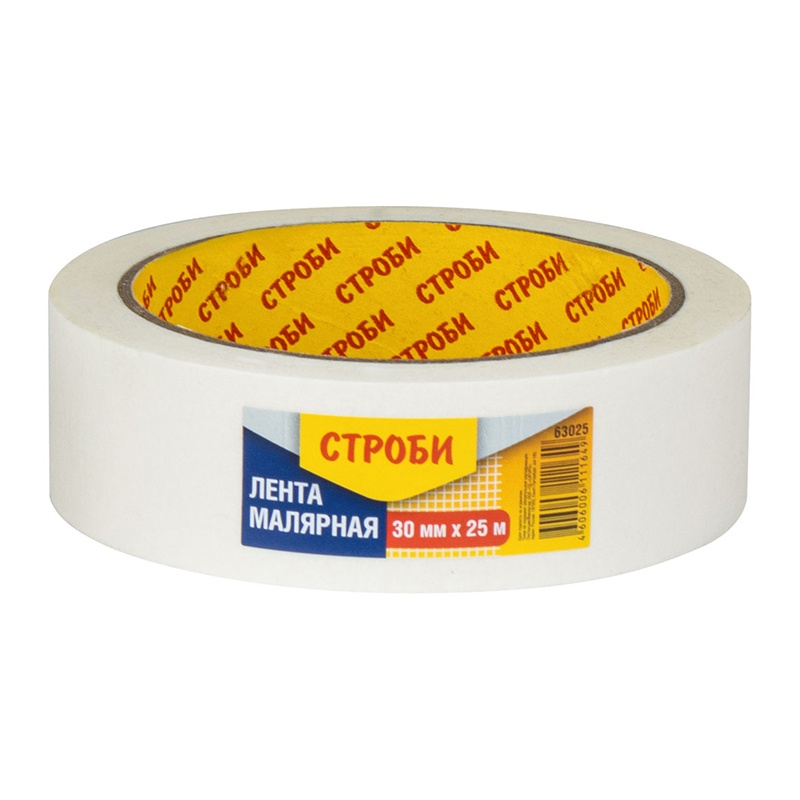 Лента малярная Строби используется для защиты поверхностей, элементов декора, мебели при проведении малярных и штукатурных работ. Малярная клейка лента 25 м представляет из себя крепированную бумагу со слоем клея на каучуковой основе.