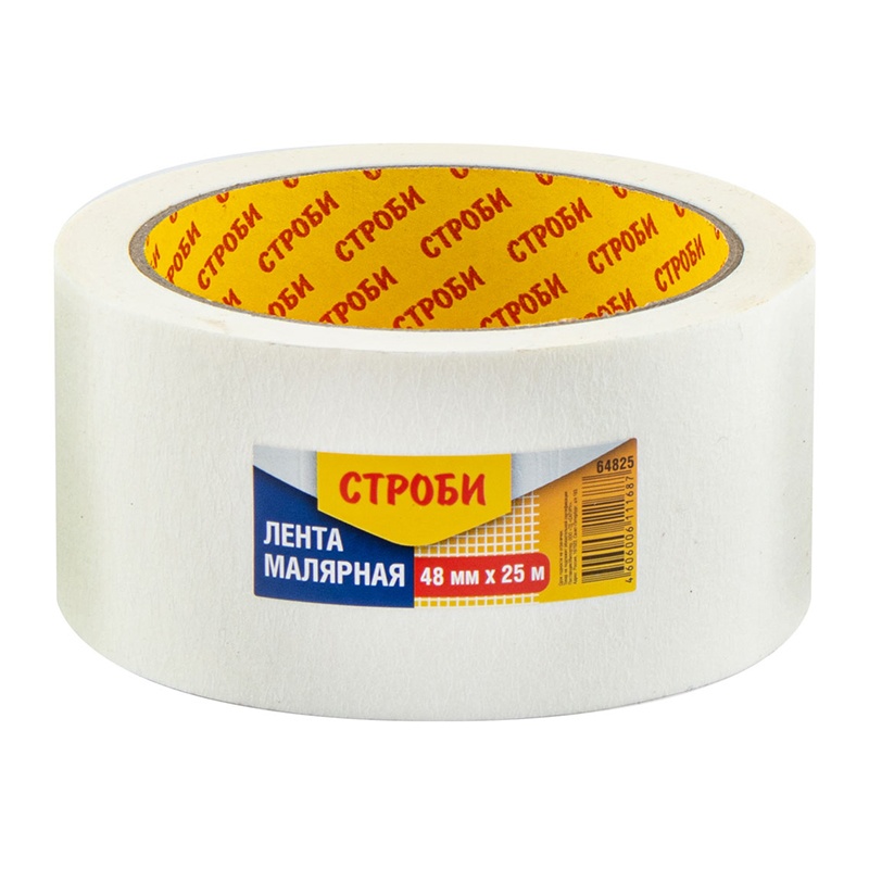 Лента малярная Строби используется для защиты поверхностей, элементов декора, мебели при проведении малярных и штукатурных работ. Малярная клейка лента 25 м представляет из себя крепированную бумагу со слоем клея на каучуковой основе.