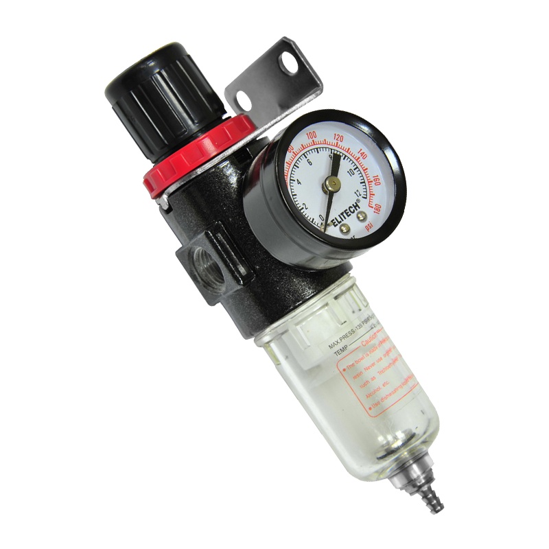 Используется для регулировки и контроля давления воздуха в диапазоне 0-8 бар, а также его очистки, сбора конденсата при подключении к выходному штуцеру компрессора. Обязателен при работе с пневмокраскопультами.