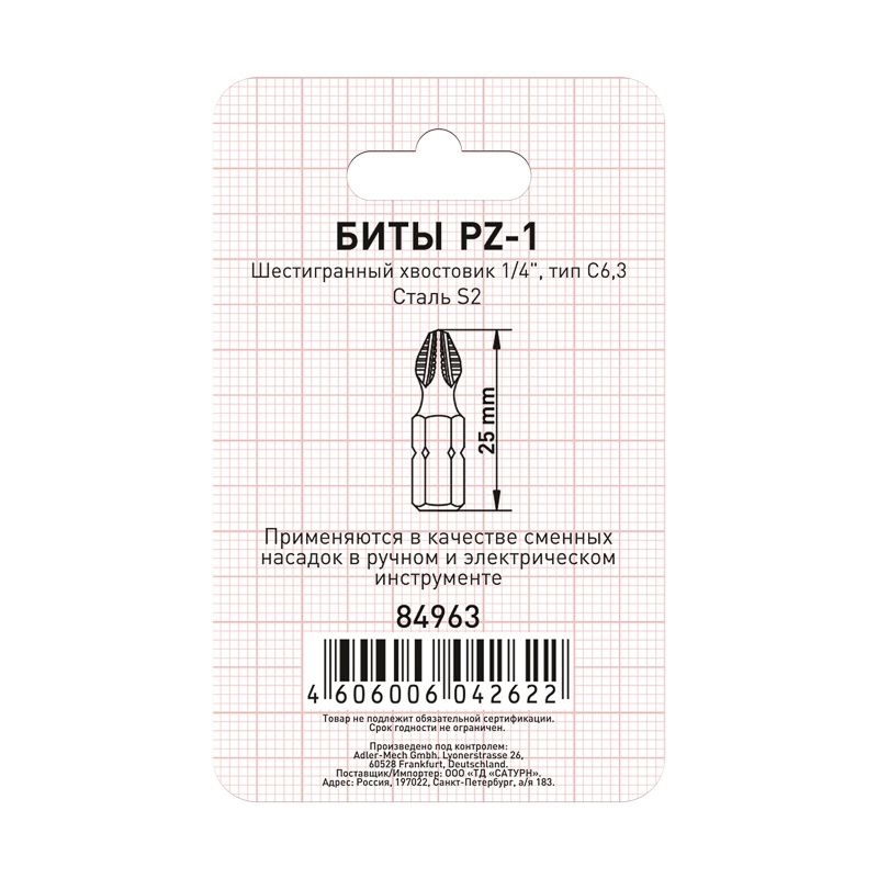 Применяются в качестве сменных насадок в ручном и электрическом инструменте. Прочная инструментальная молибденовая сталь S2. Производство методом холодной ковки. Магнитный шлиц. Шестигранный хвостовик 1/4″С